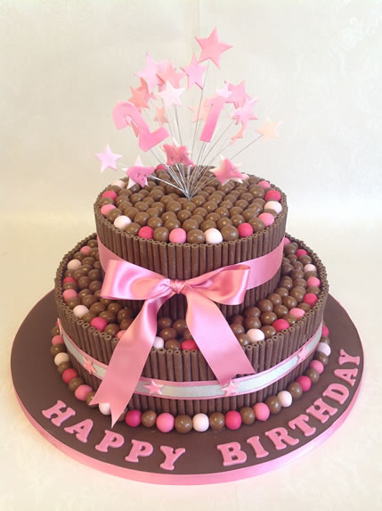 2 tier chocolate fingers and peanut m&m cake.
